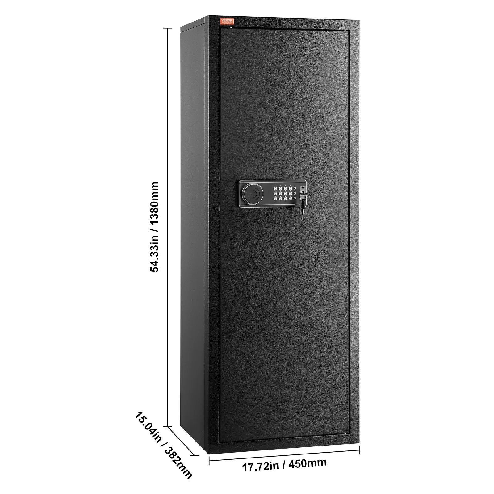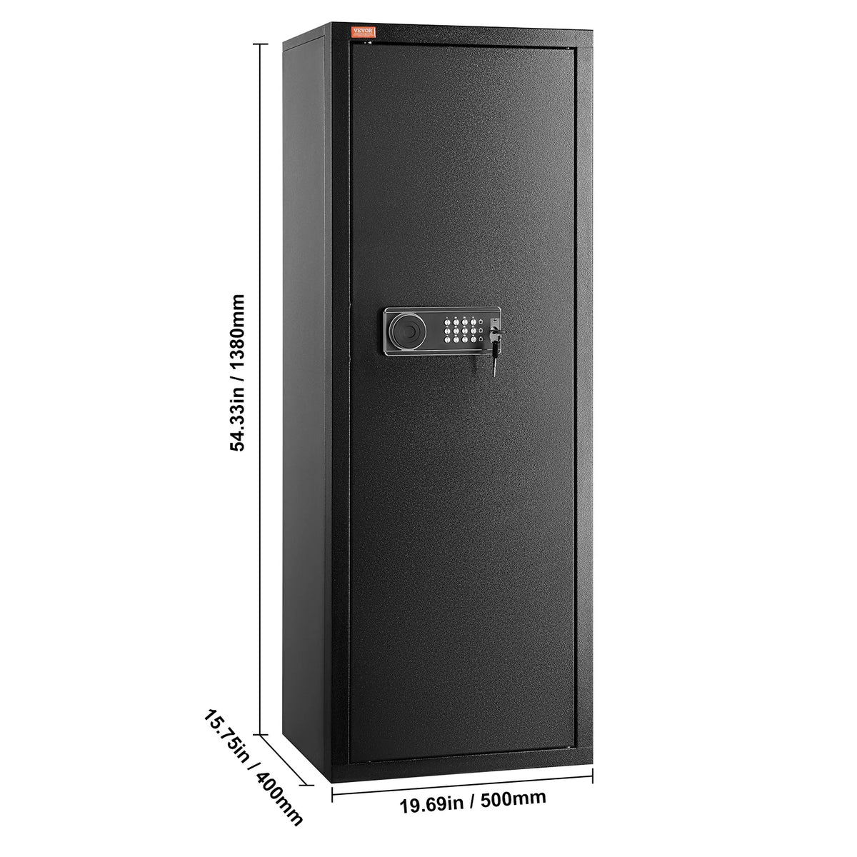 Deze geweerkluis lost veelvoorkomende opslagproblemen op door hoge capaciteit te combineren met een compact formaat en snelle elektronische toegang - ideaal voor huiseigenaren, jagers en schietliefhebbers die georganiseerde, veilige opslag nodig hebben. Duurzame staalconstructie en verstelbare rekken zorgen voor een nauwkeurige pasvorm en bescherming voor verschillende vuurwapengroottes, terwijl het toetsenbord het zoeken naar sleutels tijdens dringende toegang vermindert.