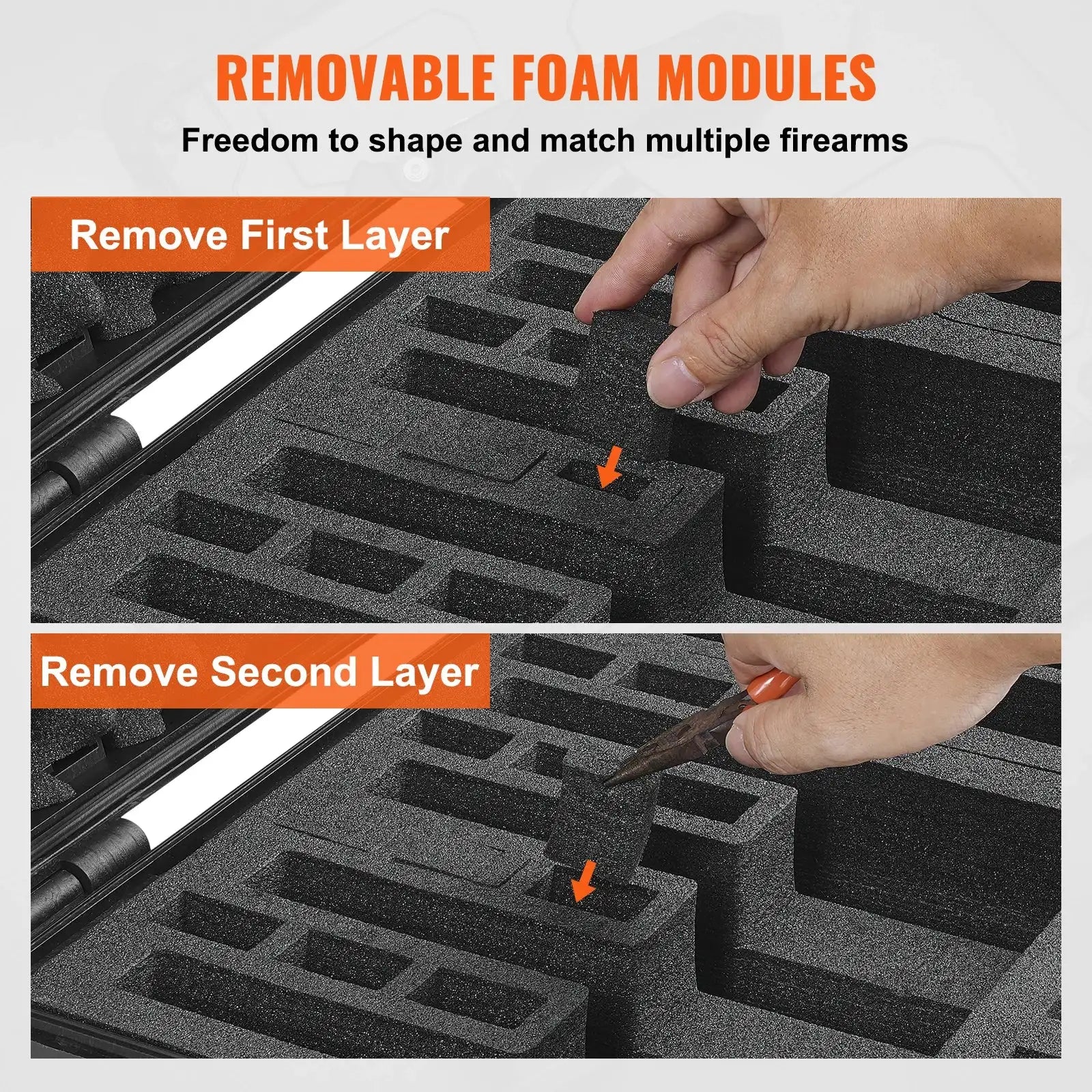 - Houd vuurwapens veilig en georganiseerd met vooraf gesneden schuim dat elke stuk stevig op zijn plaats houdt, waardoor verschuivingen tijdens het transport worden voorkomen.