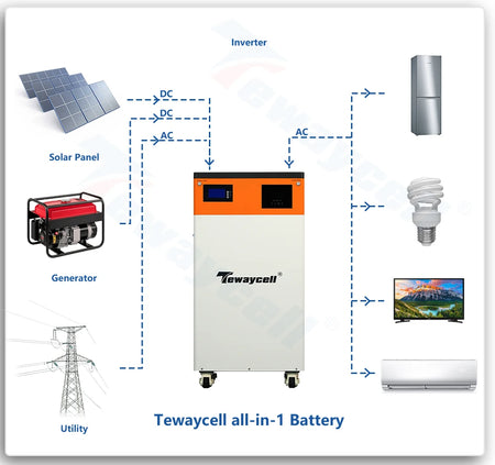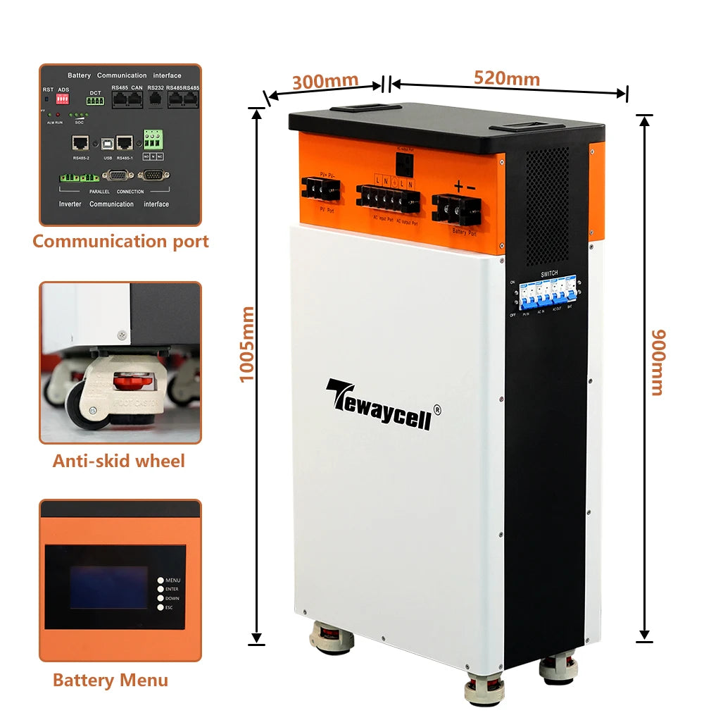 - 1 x Tewaycell 48V 280Ah LiFePO4 Powerwall met ingebouwde 5kW omvormer MPPT ESS voor thuiszonne-energie