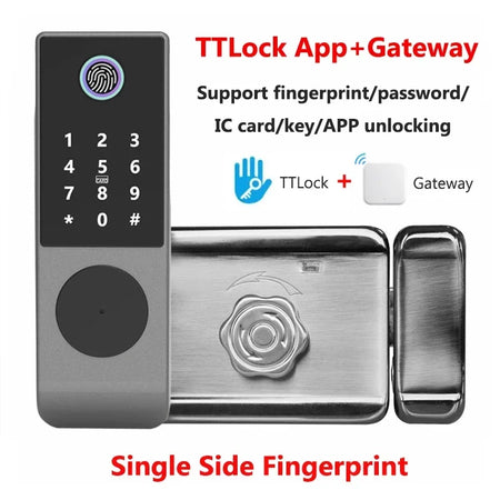 TTLock WIFI Dubbelzijdige Vingerafdrukslot - IP66 Waterdicht — Een veilige, weerbestendige slimme slot dat snelle biometrische toegang, WiFi/Bluetooth-connectiviteit en omkeerbare handgrepen combineert voor veelzijdige deurinstallaties. Ideaal voor residentiële en lichte commerciële deuren die betrouwbare, sleutelvrije toegang vereisen.