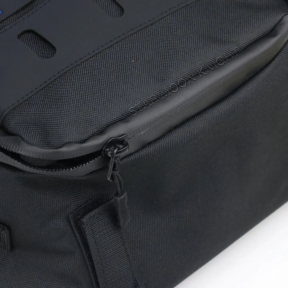 De tas is precies op maat gemaakt om in de uitsparing van het deksel van de Vario Topkoffer te passen. Hij wordt stevig bevestigd aan de vier bevestigingslussen van het deksel met klittenbandriemen, waardoor slippen bij snelheid wordt voorkomen en de inhoud stevig op zijn plaats blijft. Een stijve inzet behoudt een gestructureerd interieur voor gemakkelijke toegang en maximale bescherming, zodat waardevolle spullen veilig blijven, zelfs op ruwe wegen of bij hoge snelheden. De bovenkap heeft een MOLLE-achtig bevestigingssysteem voor extra bevestigingen en accessoires, waardoor uw opslagmogelijkheden onderweg worden uitgebreid. Een waterafstotende, stofdichte rits en een antislip draaghandvat zorgen voor gemak bij korte stops en inpakken onderweg.