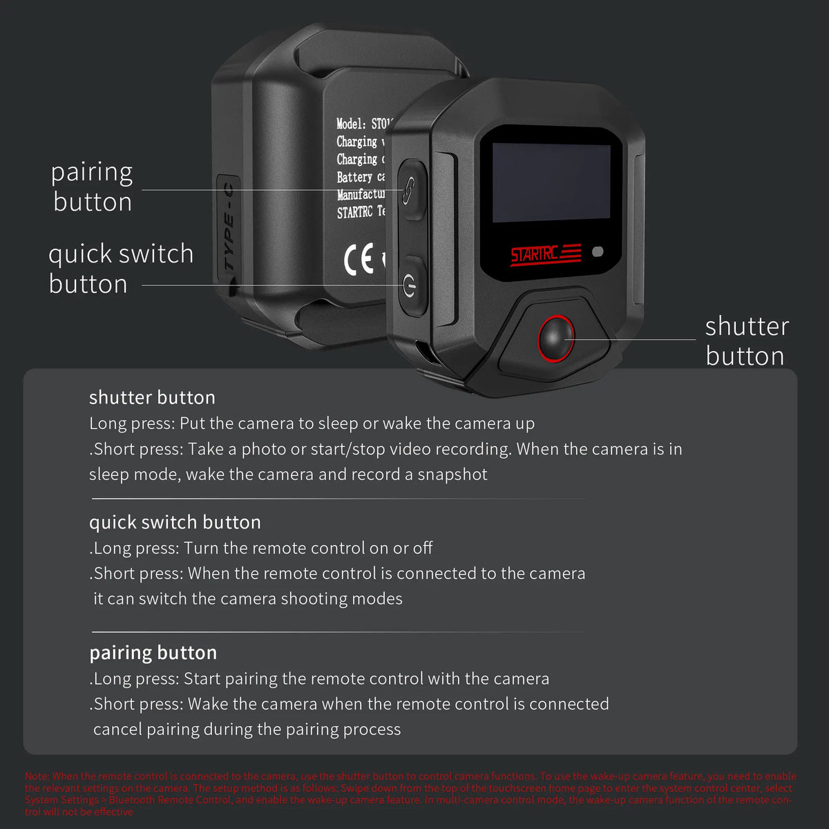Introductie van de Waterdichte Draadloze Bluetooth Afstandsbediening, exclusief ontworpen voor DJI Action 5 Pro en Action 4 camera's. Leg je avonturen naadloos vast met precisie en gemak, of je nu op de fiets zit of de natuur verkent.