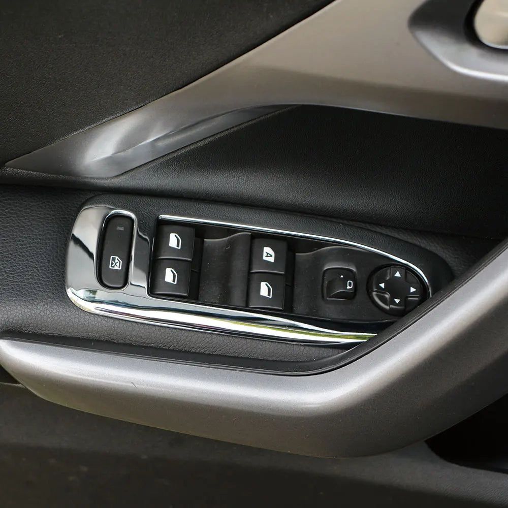 Verbeter het interieur van uw Peugeot met het Chrome Raamliftknop Schakelpaneel, een 4-delig chroomafwerkingsset ontworpen voor Peugeot 2008 en 208 modellen van 2014–2019. Deze upgrade biedt een premium uitstraling en beschermende rand voor uw raam schakelgebied, waarbij stijl wordt gecombineerd met praktische duurzaamheid.