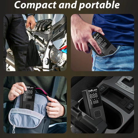- Gemak onderweg: pomp banden overal op—geen stopcontact nodig—zodat uw reis soepel en veilig verloopt.