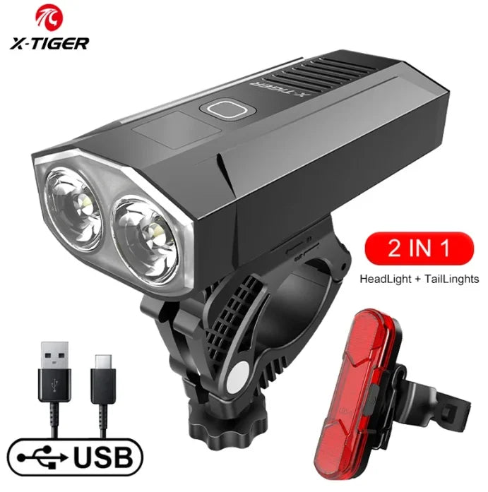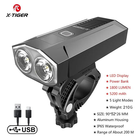 XTiger Oplaadbare Aluminium MTB Fiets Koplamp Met 5200mAh Batterij, IPX5 Waterdicht, Ultralichte LED Lamp