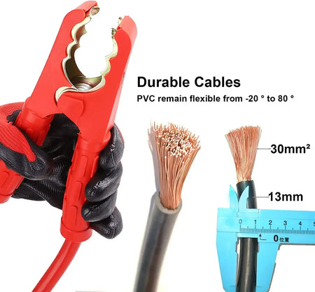 - Trwała, niezawodna wydajność w każdych warunkach klimatycznych: pogrubione rdzenie 30 mm² o wysokiej zawartości miedzi (CCA) oraz elastyczna izolacja termiczna chronią od -40 °C do gorących środowisk.