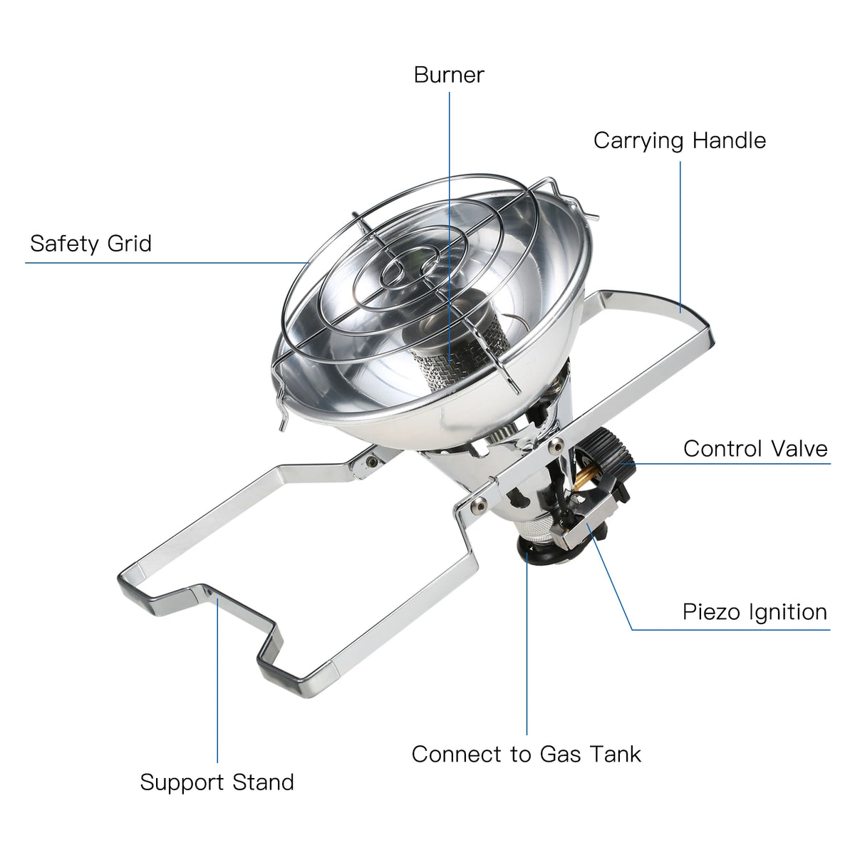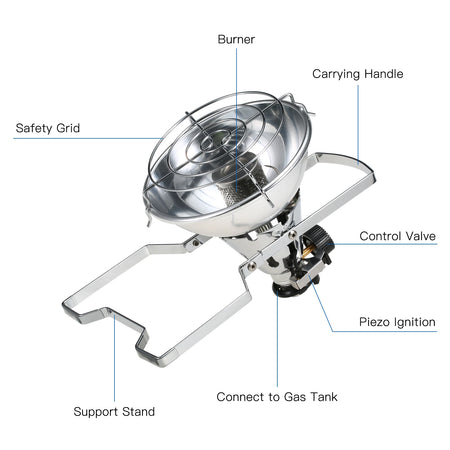 - Bezpieczny i przyjazny dla użytkownika: Regulowany przepływ gazu i zawór mocy grzewczej, plus osłona emitera odporna na rdzę dla długotrwałej niezawodności. Noś za pomocą wbudowanego uchwytu, aby pomóc zapobiec poparzeniom.