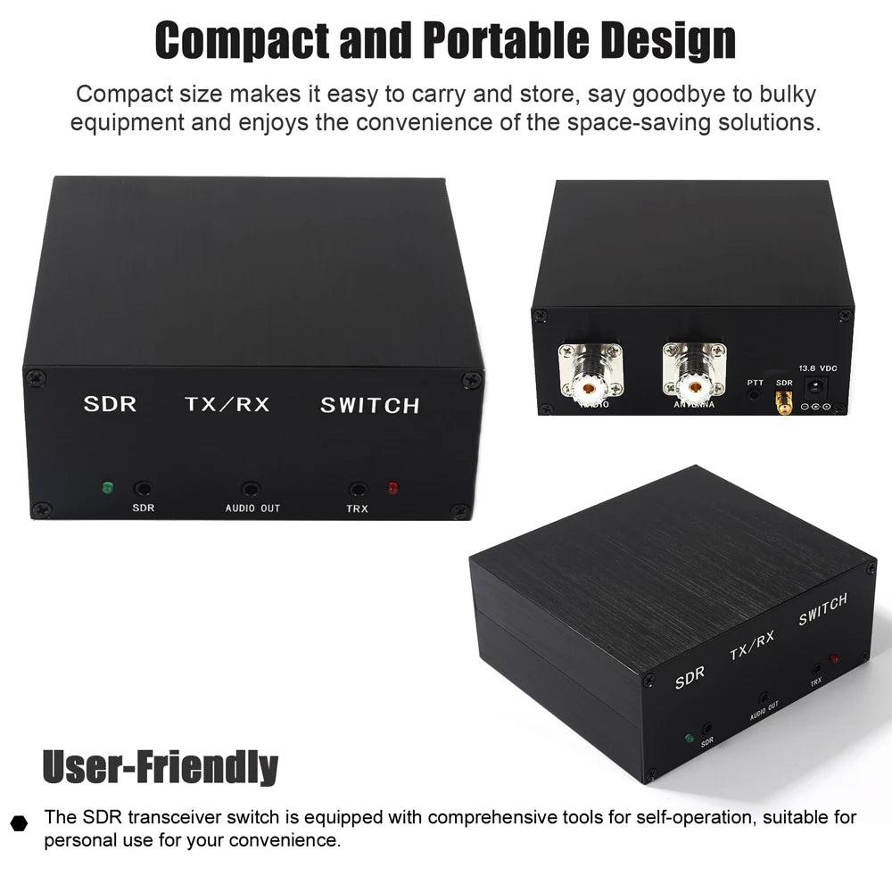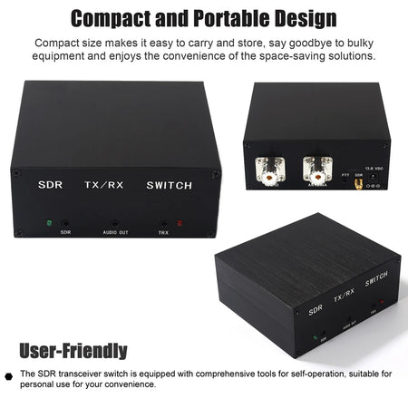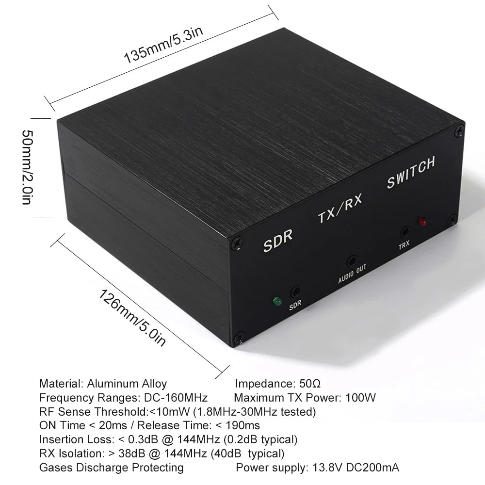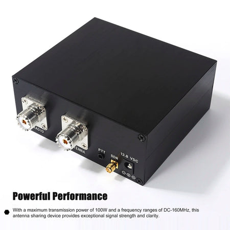 Poznaj jednostkę 100W 160MHz SDR Transceiver Switch Antenna Sharer — kompaktowe, wytrzymałe rozwiązanie zaprojektowane do dzielenia jednej anteny między nadawanie a odbieranie z klarownością i niezawodnością. Wykonana z wysokiej jakości stopu aluminium dla doskonałego odprowadzania ciepła, ten przełącznik SDR transceiver zapewnia solidną wydajność, która spełnia wymagania zarówno w scenariuszach nadawania, jak i odbierania. Z maksymalną mocą TX wynoszącą 100W i zakresem częstotliwości od DC do 160 MHz, zapewnia silną siłę sygnału i czysty odbiór dla Twoich ustawień SDR lub tradycyjnego radia.