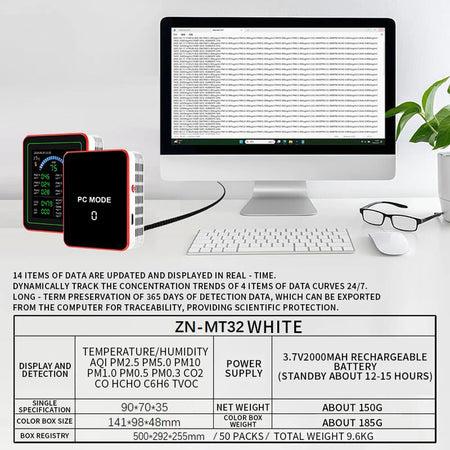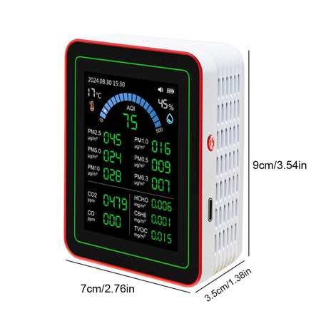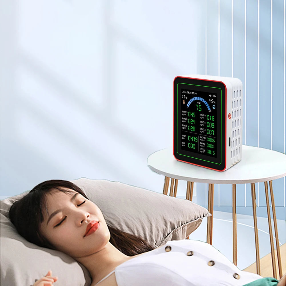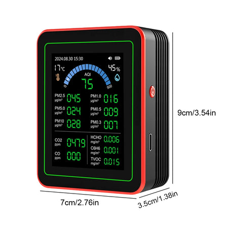 Poznaj 18 w 1 monitor powietrza w czasie rzeczywistym CO2 HCHO TVOC PM2.5 PM10 — kompaktowy, przenośny detektor jakości powietrza do użytku w domu, samochodzie, biurze, dla roślin i zwierząt. Oferuje pomiary w czasie rzeczywistym dla kluczowych zanieczyszczeń i czynników środowiskowych na wyraźnym wyświetlaczu TFT oraz długotrwałych sensorach elektrochemicznych. Zaprojektowany z myślą o niezawodności, wykorzystuje wysokiej jakości moduły detekcji elektrochemicznej dla stabilnej wydajności, silnej odporności na zakłócenia, niskiego zużycia energii i długiej żywotności. Śledź CO2, CO, PM2.5, PM10, formaldehyd (HCHO), TVOC, temperaturę i wilgotność, a także AQI, wszystko na jednym ekranie. Urządzenie pokazuje również poziom naładowania baterii i czas, a także oferuje funkcjonalność krzywej i porównania formaldehydu do szczegółowej analizy. 2,8-calowy wyświetlacz TFT w kolorze sprawia, że interpretacja danych jest szybka i łatwa na pierwszy rzut oka. Jego wysokiej jakości, przenośna konstrukcja pozwala na bycie na bieżąco, gdziekolwiek jesteś — w domu, w samochodzie lub w drodze. Urządzenie jest kompaktowe i lekkie o solidnej budowie oraz przyjaznym interfejsie, idealne zarówno dla profesjonalistów, jak i codziennych użytkowników. Obsługuje prostą, intuicyjną obsługę, w tym łatwe przełączanie między Celsjuszem a Fahrenheitem, szybką kalibrację i wiele widoków danych, aby pomóc w optymalizacji wentylacji i decyzji dotyczących jakości powietrza. Oferując jakość i zaufaną obsługę od 2002 roku na intercyprus.com.