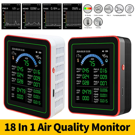 18 w 1 Monitor Powietrza w Czasie Rzeczywistym CO2 HCHO TVOC PM2.5 PM10