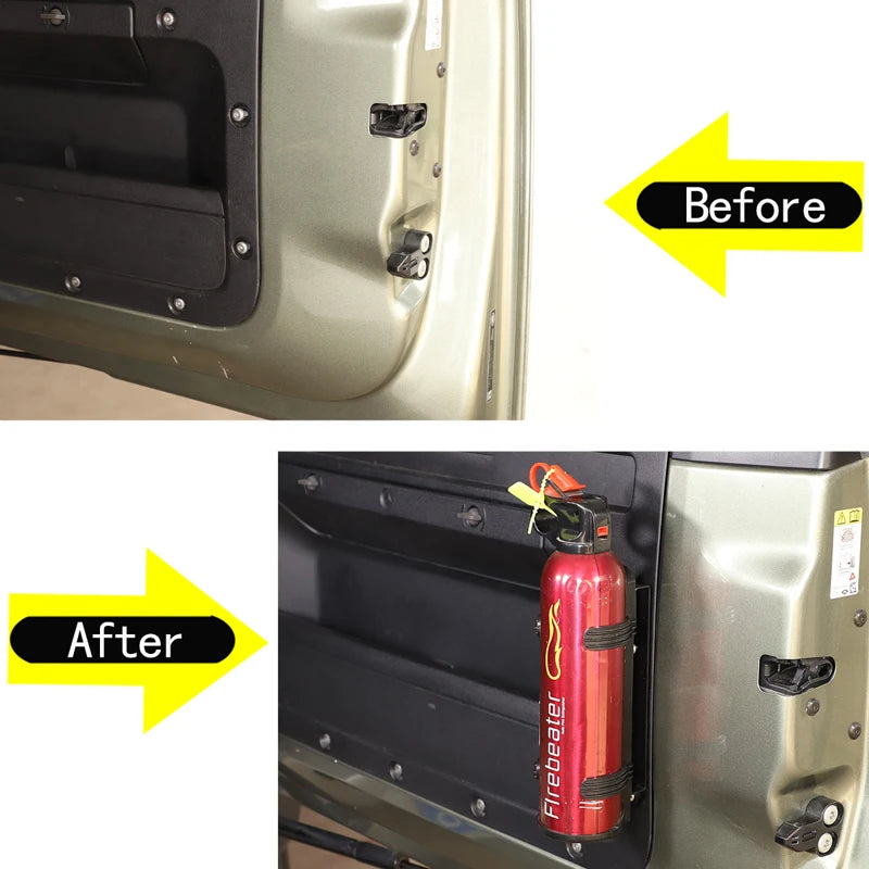Ulepsz swój Defender 90 lub 110 za pomocą uchwytu na gaśnicę ABS Black Tailgate Extinguisher Bracket. Wykonany z wysokiej jakości ABS i stali nierdzewnej, ten trwały uchwyt bezpiecznie przechowuje gaśnicę, jednocześnie dodając czysty, wytrzymały wygląd tylnej klapie. Zaprojektowany dla Land Rover Defender 90/110 z lat 2020–2023, montuje się szybko na tylnej klapie za pomocą taśmy klejącej do samochodów — bez konieczności wiercenia. Eleganckie czarne wykończenie odporne jest na zarysowania i zużycie, utrzymując wnętrze w doskonałym stanie nawet podczas off-roadowych przygód. Dzięki certyfikatowi ISO 9001, ten uchwyt odzwierciedla zaangażowanie w jakość i niezawodną wydajność zarówno do codziennego użytku, jak i wymagających wypraw.