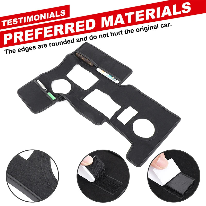 - Chroni konsolę centralną przed zarysowaniami, rozlaniami i codziennym zużyciem, jednocześnie podnosząc wygląd kabiny dzięki wysokiej jakości czarnemu wykończeniu ze skóry.