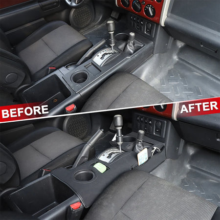 Ulepsz wnętrze swojego Toyota FJ Cruiser za pomocą czarnej naklejki na konsolę, premium ochrony konsoli centralnej wykonanej z wysokogatunkowej skóry Sheep Nappa. Zaprojektowana dla modeli FJ Cruiser z lat 2007-2021, ta jednoczęściowa osłona chroni centralny obszar sterowania przed zarysowaniami, otarciami i codziennym zużyciem, jednocześnie dodając wyrafinowany czarny skórzany akcent do kabiny. Wyprodukowana w certyfikowanym zakładzie ISO9001 w Chinach kontynentalnych, cechuje się prostą instalacją bez użycia narzędzi dzięki mocnej dwustronnej taśmie klejącej.