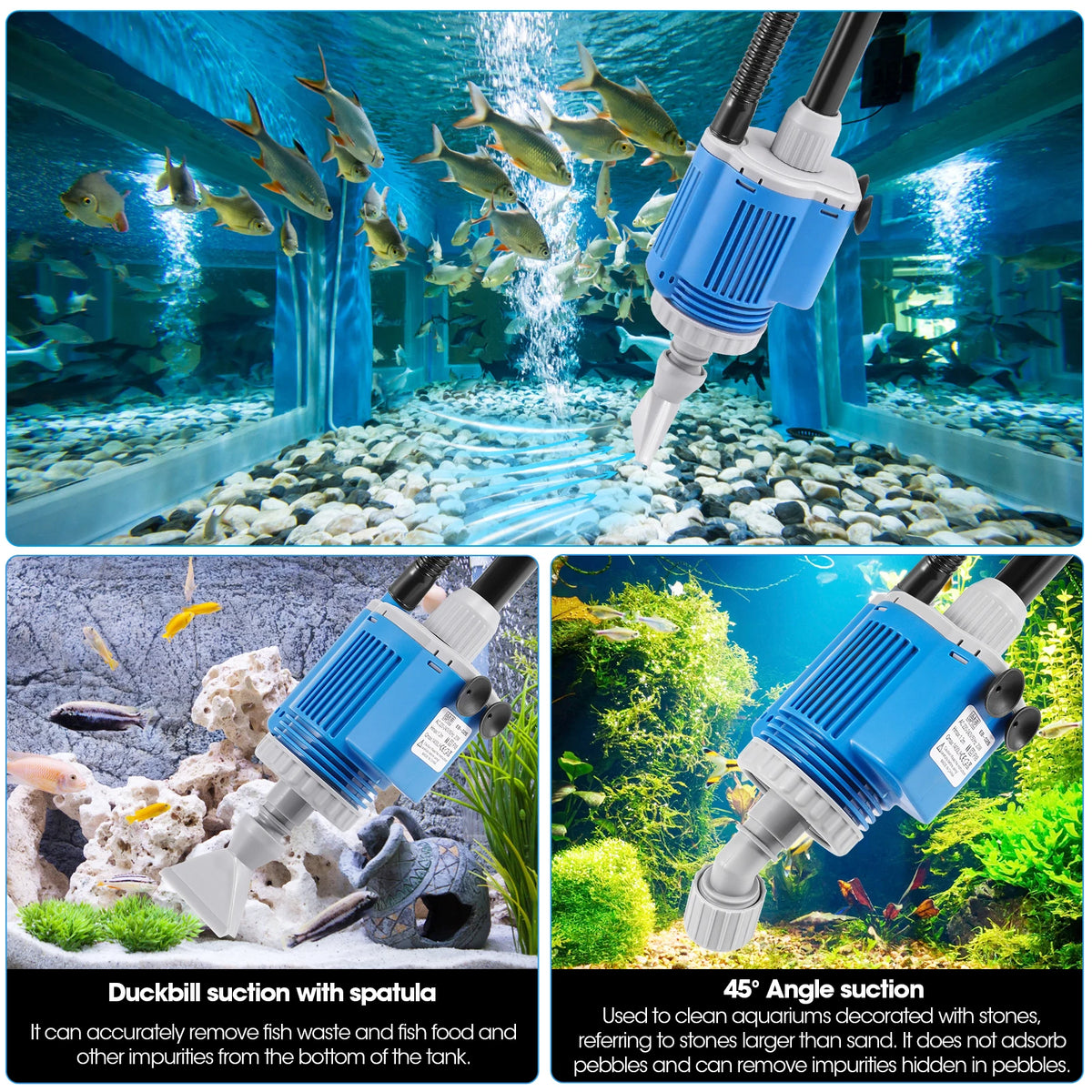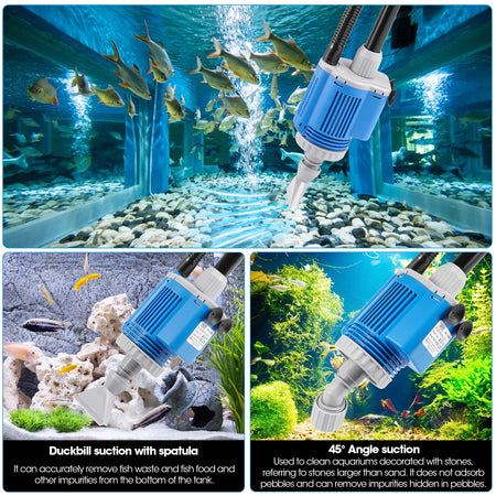 - Oszczędzaj czas podczas cotygodniowych zmian wody, odsysając brudną wodę i zanieczyszczenia, jednocześnie łatwo odnawiając akwarium.