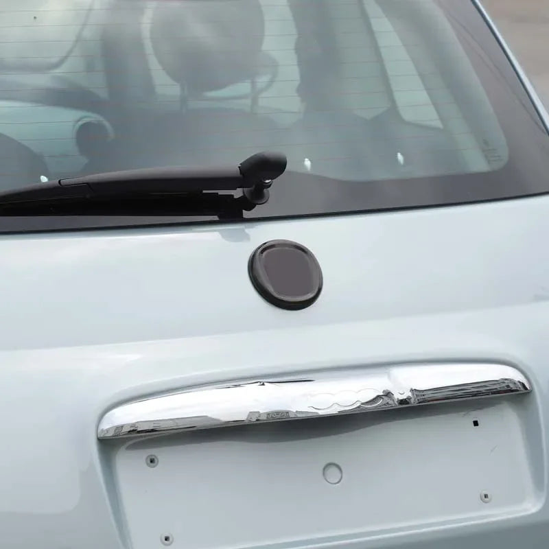 - 2 sztuki naklejek na osłonę logo Fiat 500 z czarnego ABS na przód i tył