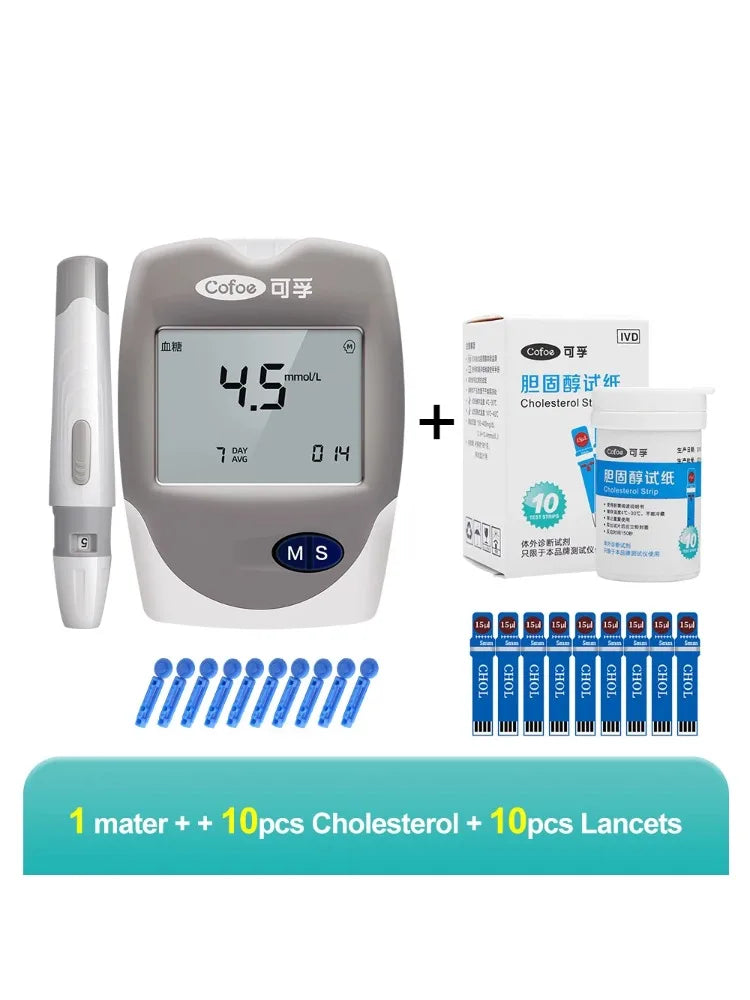 3 W 1 Analizator Cholesterolu i Glukozy z 10 paskami CHOL