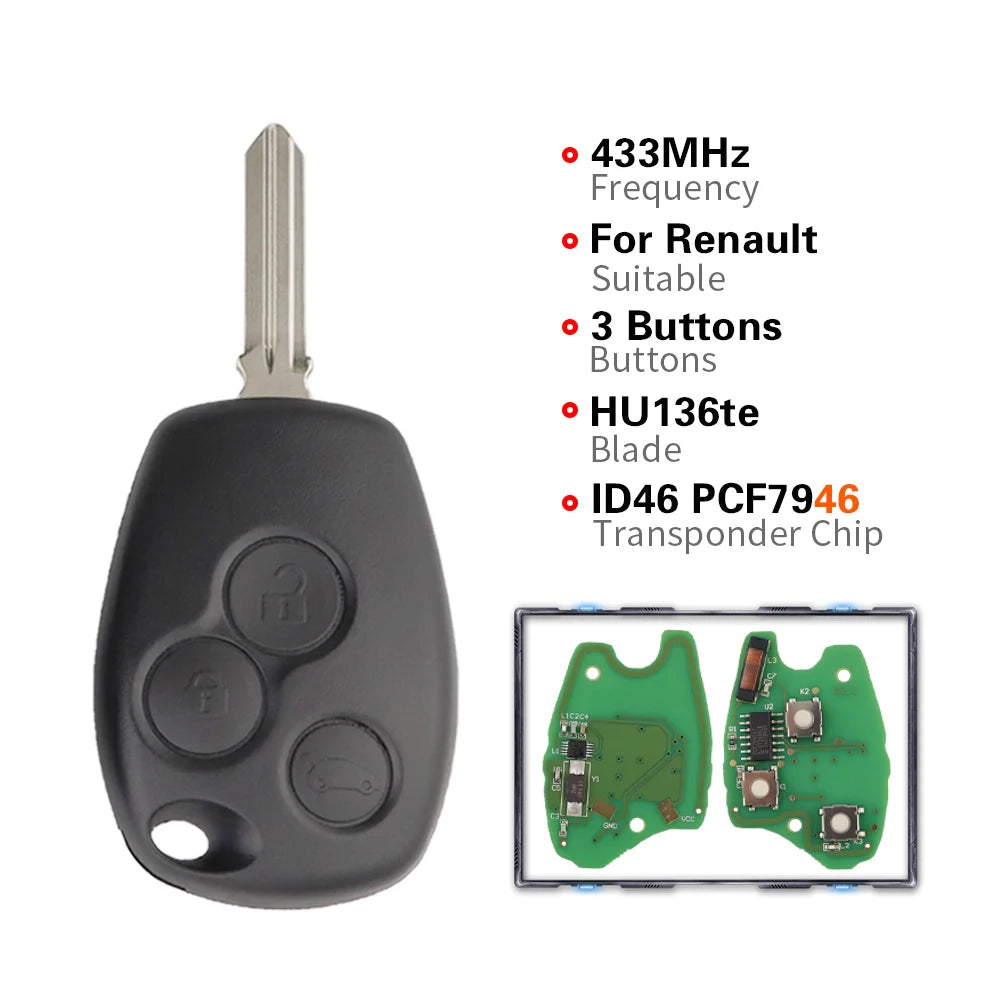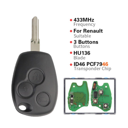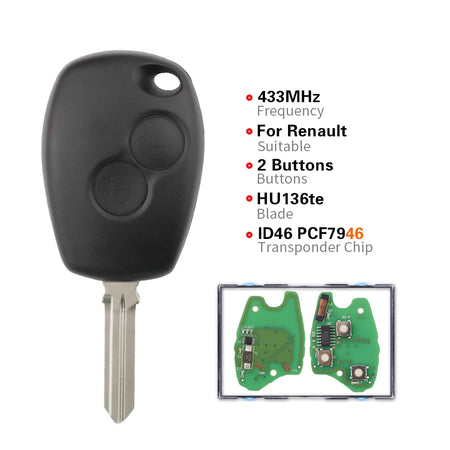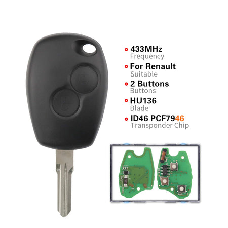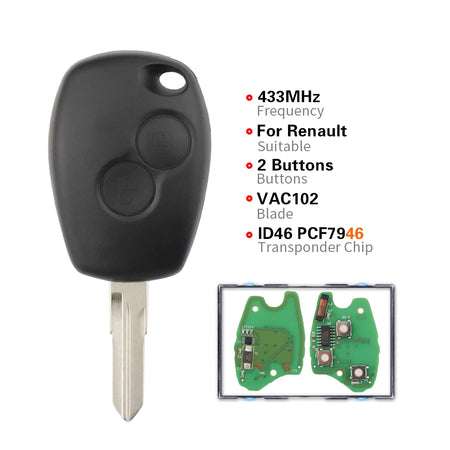 Zdalny klucz samochodowy do Renault Duster 434MHz PCF7946, klucz 2-przyciskowy, gotowy do użycia, zamiennik