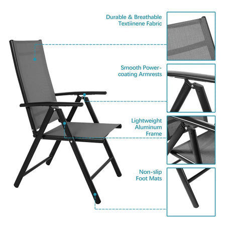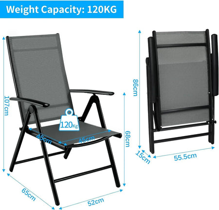 - Wszechstronny komfort: 7-stopniowo regulowane oparcie każdego krzesła pozwala znaleźć idealny kąt siedzenia do czytania, jedzenia lub opalania się.