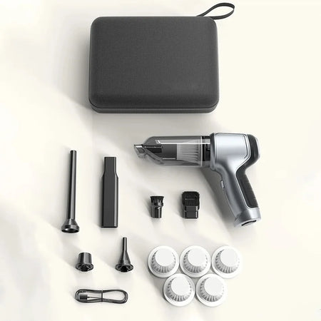 Przedstawiamy odkurzacz bezprzewodowy SUITU 95000Pa – bezprzewodowe rozwiązanie do sprzątania, stworzone zarówno do samochodów, jak i do użytku domowego. Ten kompaktowy odkurzacz zapewnia mocne ssanie, elastyczne końcówki i łatwość przenoszenia, dzięki czemu możesz poradzić sobie z okruchami, kurzem i zanieczyszczeniami, gdziekolwiek się ukrywają. Wykonany z trwałego ABS, waży zaledwie 0,55 kg i ma wymiary 21 × 16 × 6,5 cm, co sprawia, że łatwo go przechowywać w bagażniku samochodu, szufladzie kuchennej lub torbie do sprzątania. Dostępny w eleganckim kolorze Czarny Szary/Srebrny Szary, posiada certyfikaty CE, RoHS i FCC dla bezpieczeństwa i niezawodności.