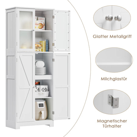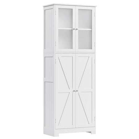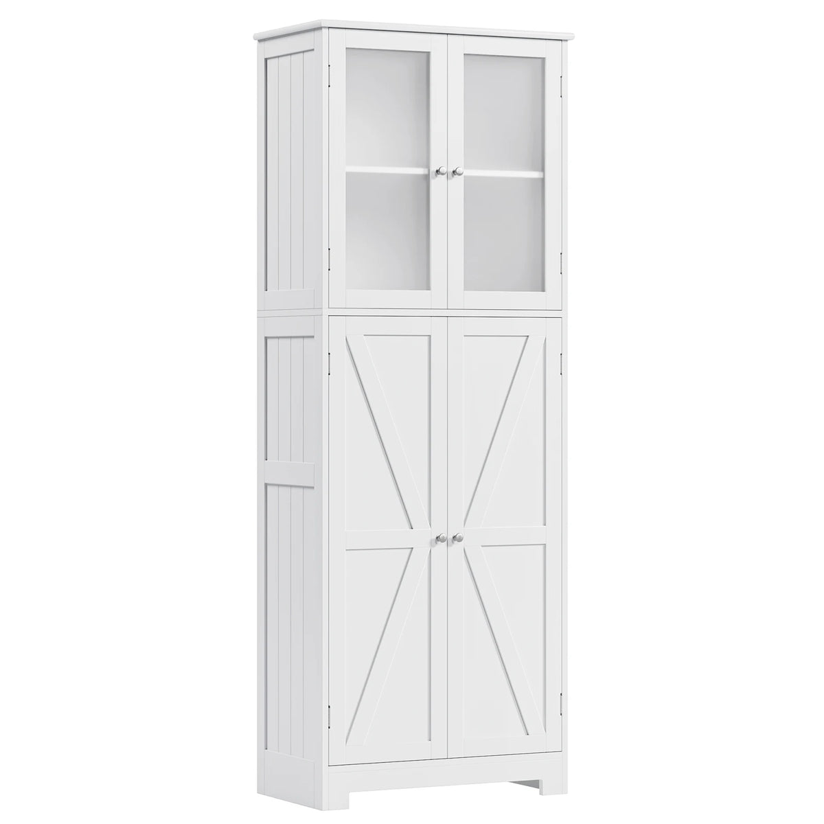 Poznaj Białą Szafę Łazienkową MDF z 4 Drzwiami i 6 Przegrodami od Getone. Wykonana z litego MDF z białym malowanym wykończeniem, ta nowoczesna szafa zapewnia trwałe miejsce do przechowywania oraz czysty, stylowy wygląd do każdej łazienki. Srebrne uchwyty uzupełniają jasnobiałe szafki, a matowe szklane drzwi dodają odrobinę współczesnej elegancji. Dzięki kompaktowym wymiarom 30 x 60 cm i drzwiom w kształcie ryżu, pasuje do ciasnych przestrzeni, jednocześnie robiąc odważne wrażenie designu.