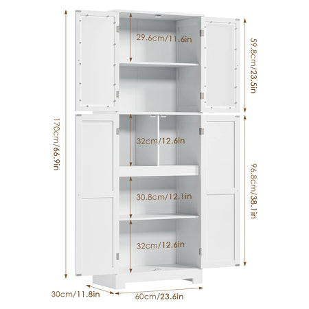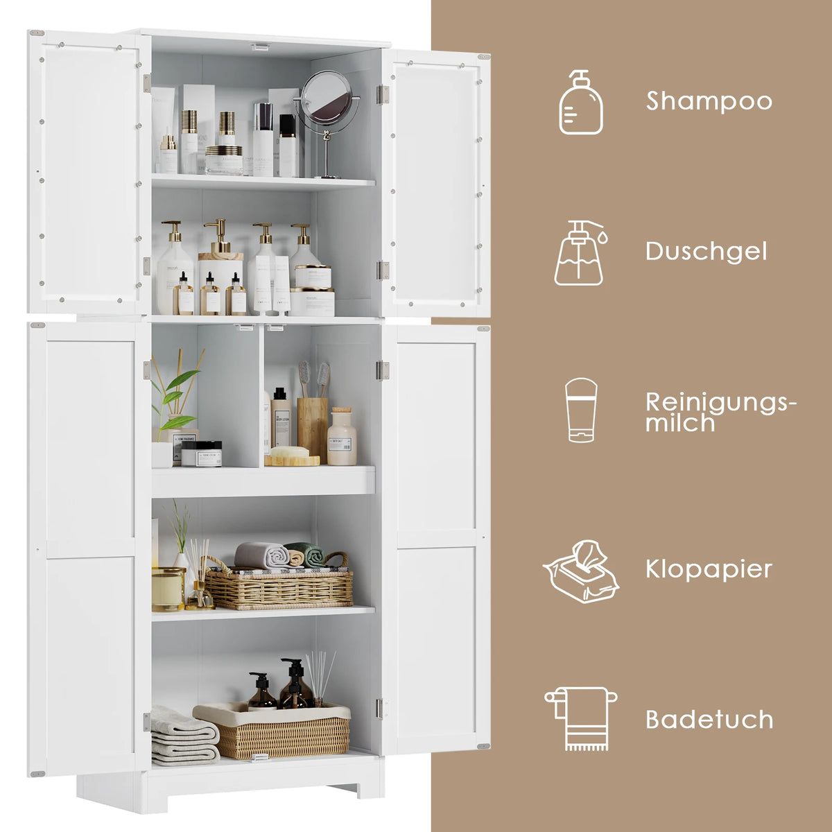 - 1 x Biała Szafa Łazienkowa MDF z 4 Drzwiami i 6 Przegrodami