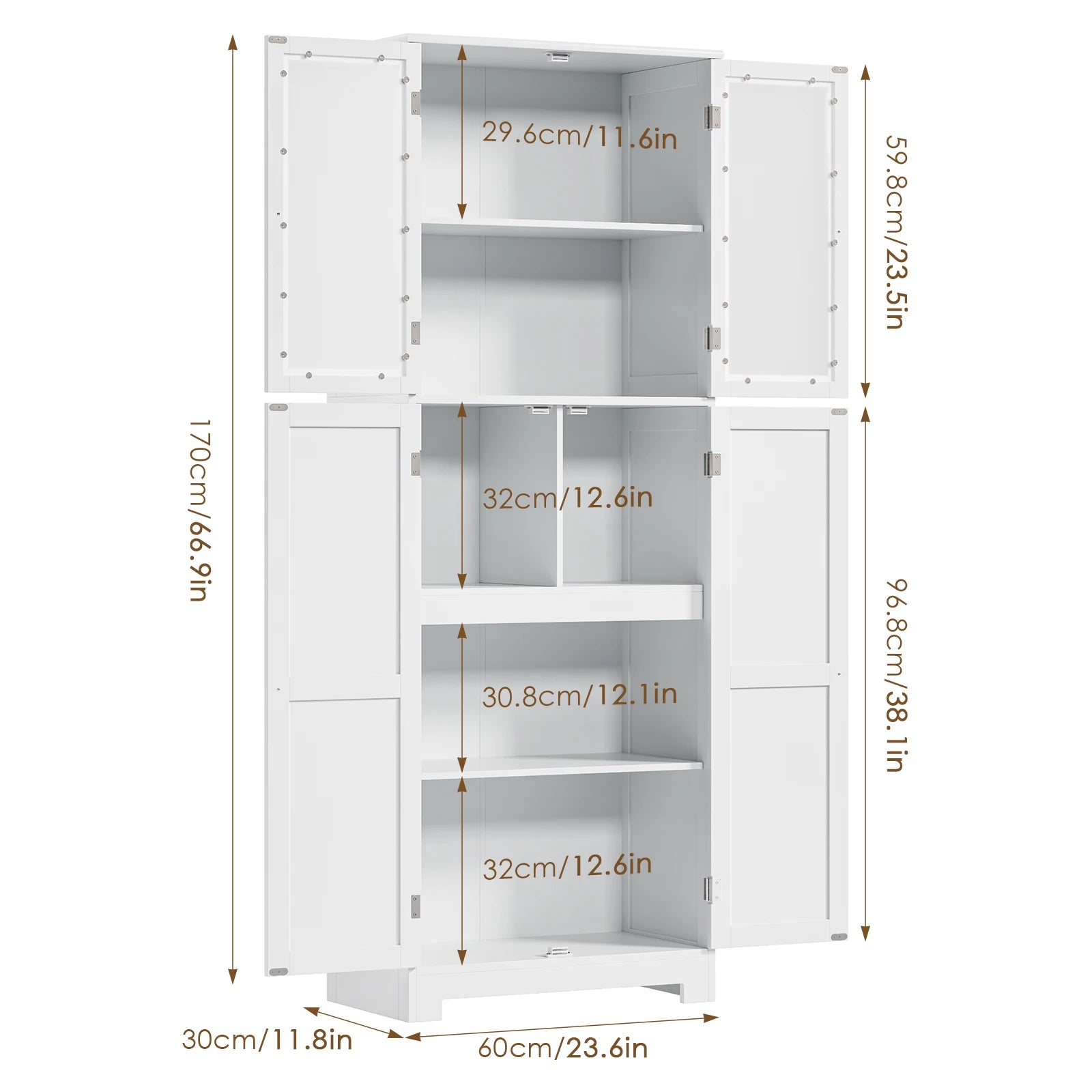 Z 4 drzwiami i 6 przegrodami zapewnia dużo miejsca do przechowywania, aby utrzymać ręczniki, kosmetyki i codzienne niezbędniki uporządkowane i poza zasięgiem wzroku. Gruba konstrukcja i solidne wykonanie gwarantują długotrwałe użytkowanie, a urządzenie zabezpieczające przed przechyłem zwiększa bezpieczeństwo podczas otwierania i zamykania drzwi.