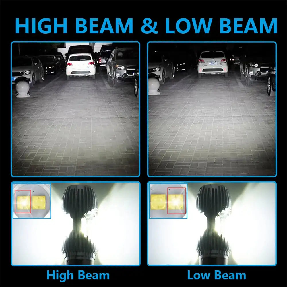 Z mocą do 3000LM na żarówkę (2000LM na parę) będziesz cieszyć się mocnym, jednolitym strumieniem światła, który redukuje ciemne plamy i odblaski. Wodoodporna konstrukcja IP67 zapewnia niezawodne oświetlenie w deszczu lub w warunkach zapylenia, podczas gdy działanie 12V DC zapewnia kompatybilność z powszechnymi systemami elektrycznymi motocykli.