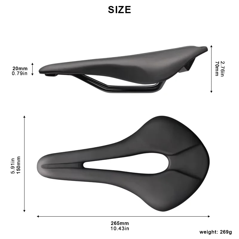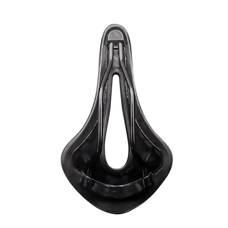 - Wklęsły środek zmniejsza nacisk na krocze i poprawia wentylację, zapewniając chłodniejszą i bardziej komfortową jazdę.