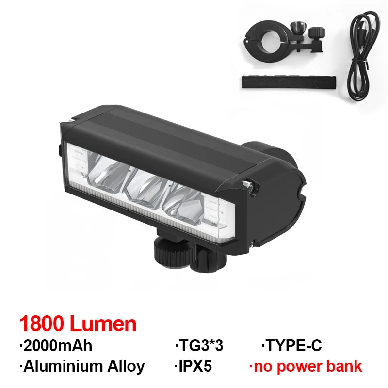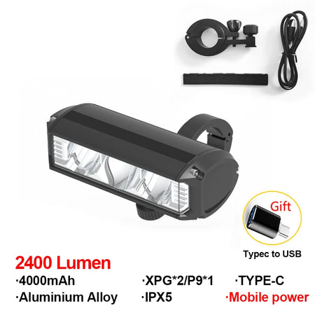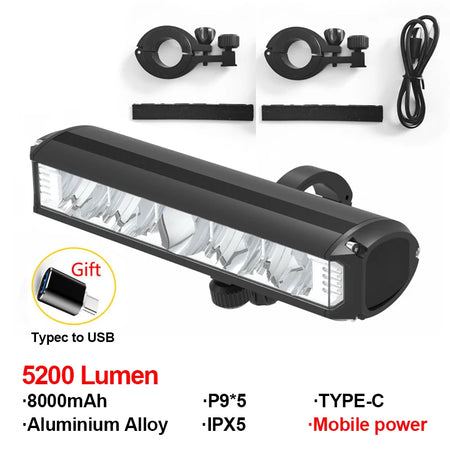 Bikeono 5200LM Przednia lampka rowerowa USB ładowalna Reflektor z aluminium Stopień ochrony IPX5 wodoodporny Do MTB i jazdy szosowej