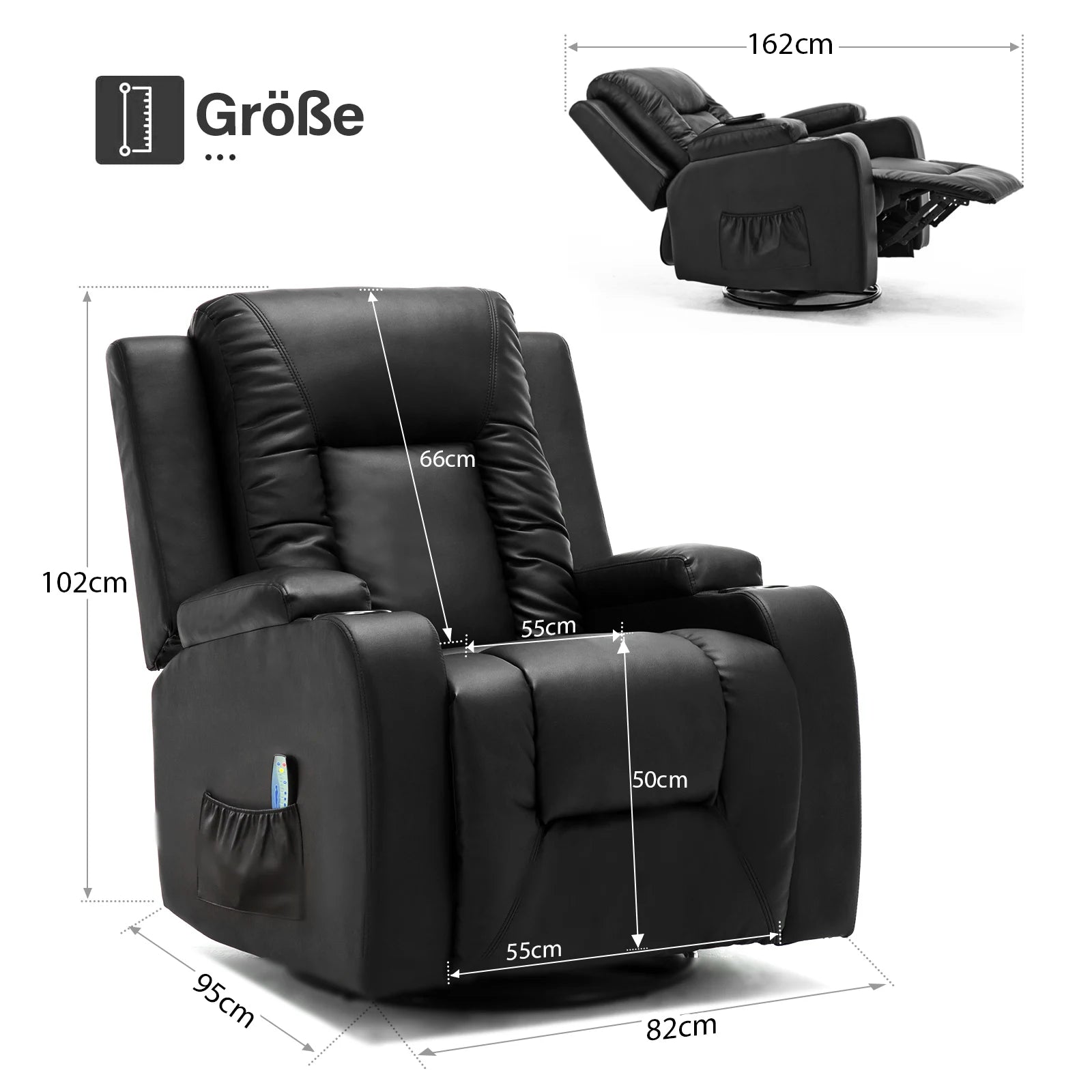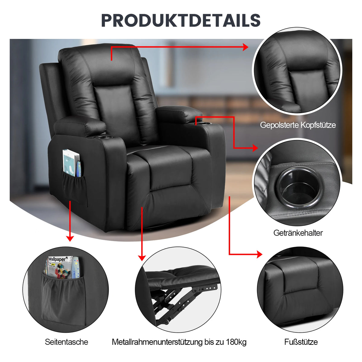 Przedstawiamy fotel COMHOMA Relax Armchair TV Reclining Leather With Backrest — nowoczesny, minimalistyczny fotel zaprojektowany, aby odmienić sposób, w jaki odpoczywasz w domu. Ten skórzany fotel wspiera czytanie, oglądanie telewizji i krótkie drzemki dzięki regulowanemu oparciu, wysuwanej podnóżce oraz obrotowi 360° dla elastycznych kątów widzenia. Dwie boczne kieszenie pozwalają mieć piloty, telefony i drobne niezbędniki zawsze pod ręką. Solidna rama, dodatkowo grube oparcie i tapicerowane siedzisko zapewniają komfort przez cały dzień, a skórzana tapicerka dodaje luksusu każdemu salonowi. Wybierz spośród czarnego, białego lub brązowego, aby dopasować do swojego wystroju. Fotel jest zaprojektowany do łatwego montażu w dwóch paczkach, z jasnymi instrukcjami i zaleceniem, aby montażu dokonały dwie osoby. Wszystkie urządzenia elektroniczne i mechaniczne sprzedawane przez InterCyprus do krajów UE posiadają certyfikat CE i dwuletnią gwarancję. Od 2002 roku zapewniamy jakość i zaufaną obsługę na intercyprus.com.