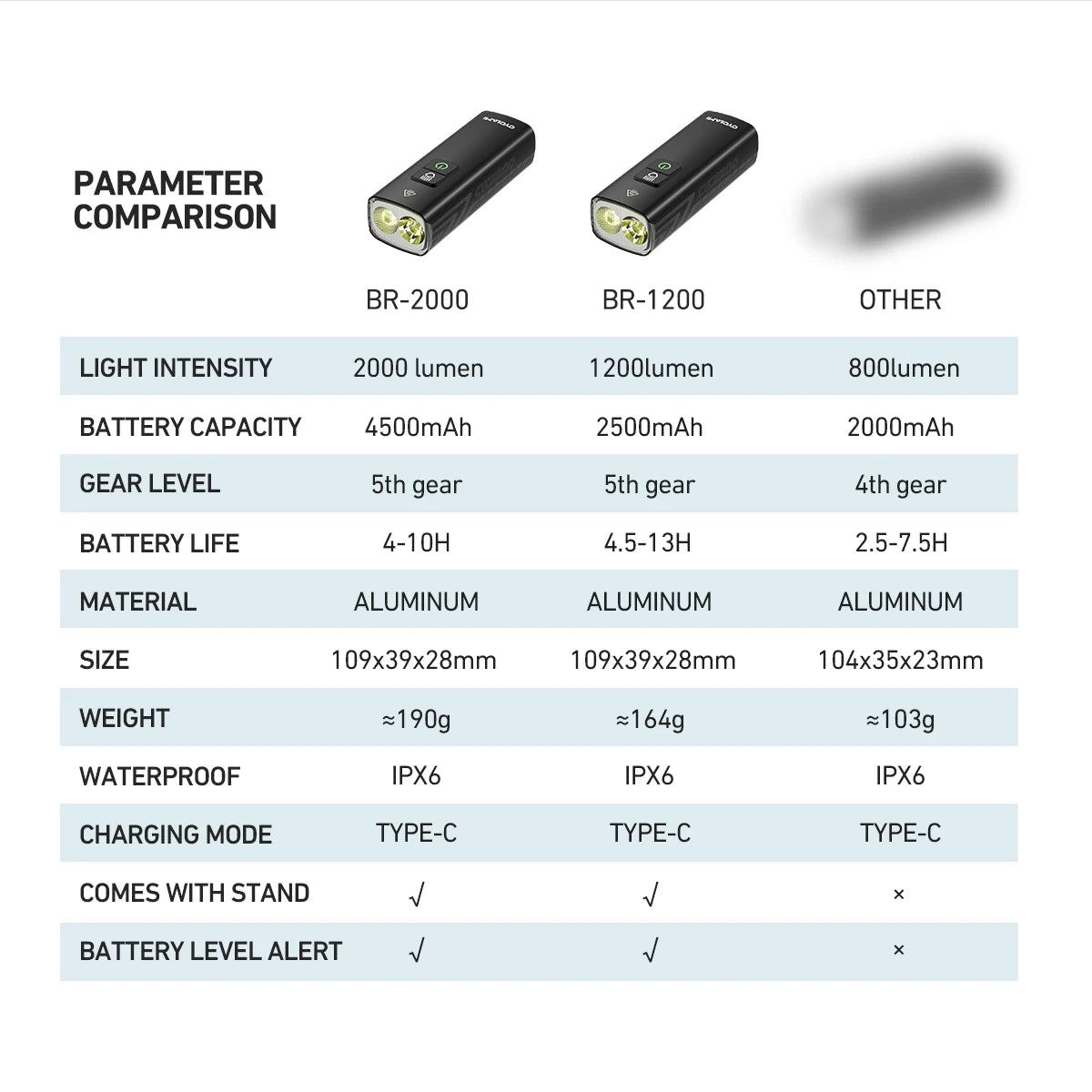 CYCLAMI BR-2000 2000 lumenów USB ładowalna przednia lampka rowerowa, stop aluminium, wodoodporna IPX6, 4500mAh