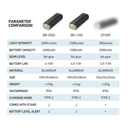 Oświetl każdą przejażdżkę na świeżym powietrzu z CYCLAMI BR-2000 2000 lumenów USB ładowaną przednią lampką rowerową. Wykonana z aluminium dla trwałości i kompaktowego designu, ta mocna przednia lampka zapewnia widoczność i bezpieczeństwo po zmroku. Jej akumulator o pojemności 4500mAh zapewnia długotrwałą moc, a klasa wodoodporności IPX6 chroni przed deszczem i zachlapaniami. Jedź z pewnością, wiedząc, że masz jasne, stabilne oświetlenie dokładnie wtedy, gdy go potrzebujesz.