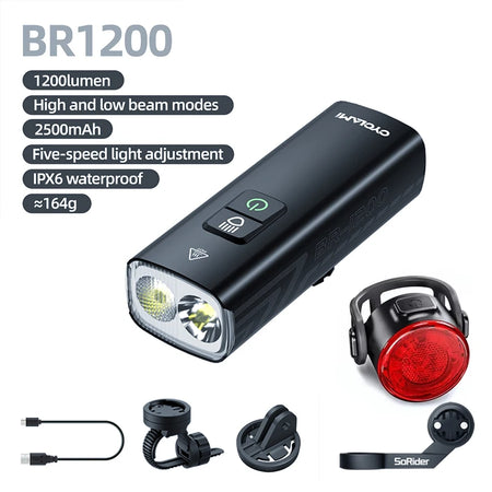 - 1 x CYCLAMI BR-2000 2000 lumenów USB ładowana przednia lampka rowerowa
