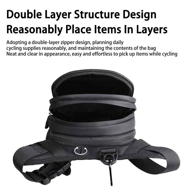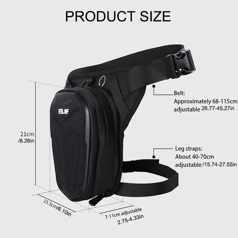 - Wszechstronne opcje noszenia (torba na pas, torba na nogę lub na ramię) zapewniają szybki dostęp i wygodne noszenie, niezależnie od tego, czy jedziesz na motocyklu, czy jesteś poza nim.