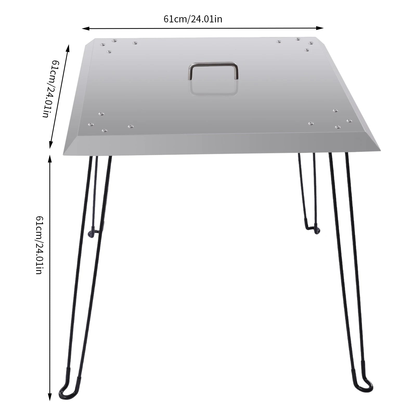 Poznaj składany deflektor ciepła do paleniska wykonany z trwałej stali nierdzewnej — inteligentne ulepszenie Twojego zewnętrznego paleniska. Ta kwadratowa osłona cieplna umieszczana jest pod paleniskiem, aby zapobiec ucieczce ciepła do góry, kierując je w dół i na zewnątrz, aby utrzymać przytulną przestrzeń do siedzenia. Zaprojektowana, by wytrzymać wysokie temperatury i wszelkie warunki pogodowe, łączy wytrzymałość z łatwą pielęgnacją przez cały rok. Składane nogi, wygodny uchwyt i kompaktowy rozmiar opakowania czynią ją przenośnym, oszczędzającym miejsce dodatkiem na patio, kemping lub spotkania wewnątrz i na zewnątrz. Nadaje się do każdego okrągłego lub prostokątnego paleniska mniejszego niż 24 × 24 × 24 cala, pomagając uzyskać więcej ciepła przy mniejszym zużyciu. Rozmiar produktu: 61 × 61 × 61 cm (24 × 24 × 24 cala). Rozmiar opakowania: 66 × 66 × 8 cm (26 × 26 × 3,15 cala). Waga brutto: 7 kg (15,43 lb). Waga netto: 6,5 kg (14,33 lb). Pochodzenie: Chiny kontynentalne. Metoda instalacji: samodzielna. Kolor: Srebrny. Materiał: Stal nierdzewna. Kształt: Kwadratowy.