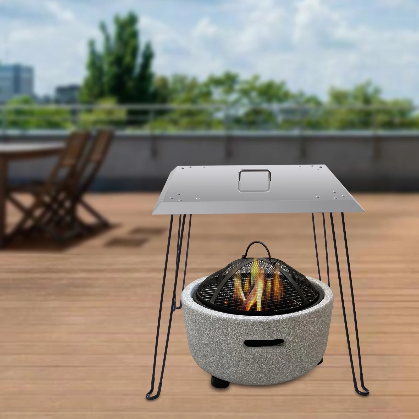 - Zastosowanie: Nadaje się do każdego okrągłego lub prostokątnego paleniska mniejszego niż 24 × 24 × 24 cala do użytku wewnątrz i na zewnątrz
