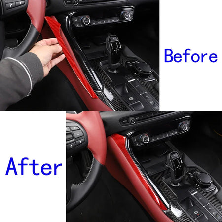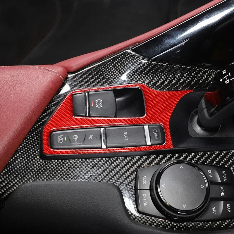 Naklejka na środkową konsolę z czerwonego włókna węglowego Toyota Supra A90