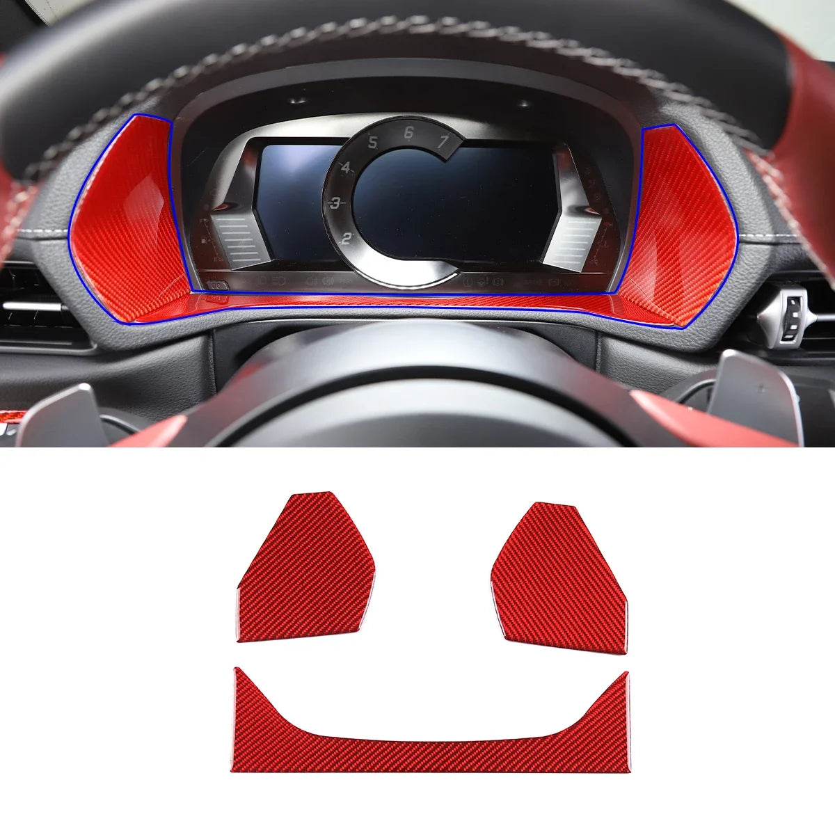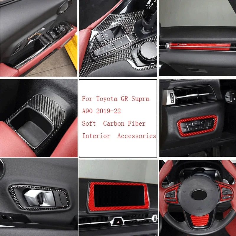 - 1 x Naklejka na konsolę środkową z czerwonego włókna węglowego kompatybilna z Toyota Supra GR Supra A90 2019–2025