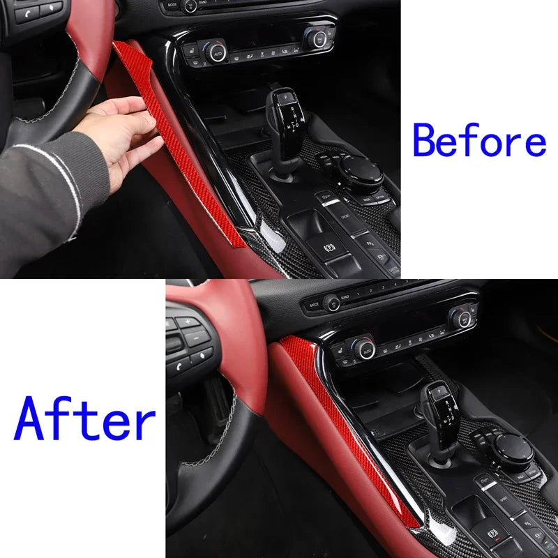 Ulepsz i chroń wnętrze swojego Toyota Supra GR Supra A90 2019–2025 dzięki tej naklejce na konsolę środkową z czerwonego włókna węglowego. Wykonana z prawdziwego włókna węglowego i wykończona odważnym czerwonym kolorem, natychmiast podnosi estetykę kokpitu, dodając trwałą ochronę przed zarysowaniami i codziennym zużyciem. Naklejka wykorzystuje mocny klej samochodowy dla czystej, bezszwowej instalacji i jest zaprojektowana tak, aby pasować do kluczowych powierzchni wnętrza — od konsoli środkowej po panel zmiany biegów i obszar kierownicy — dzięki czemu Twoja Supra wygląda sportowo i bardziej elegancko w kilka minut.