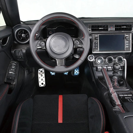 - Poprawia estetykę wnętrza dzięki wyrafinowanemu wyglądowi włókna węglowego, który uzupełnia sportowy styl BRZ.