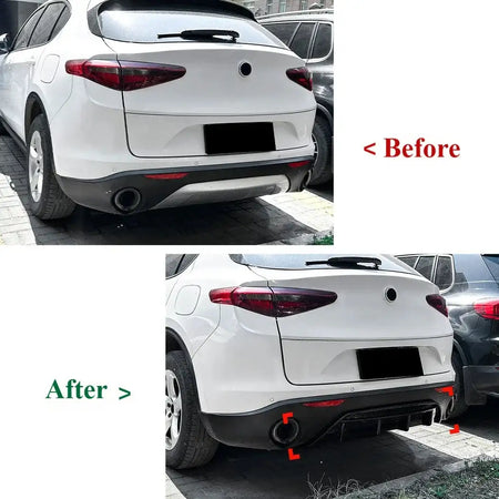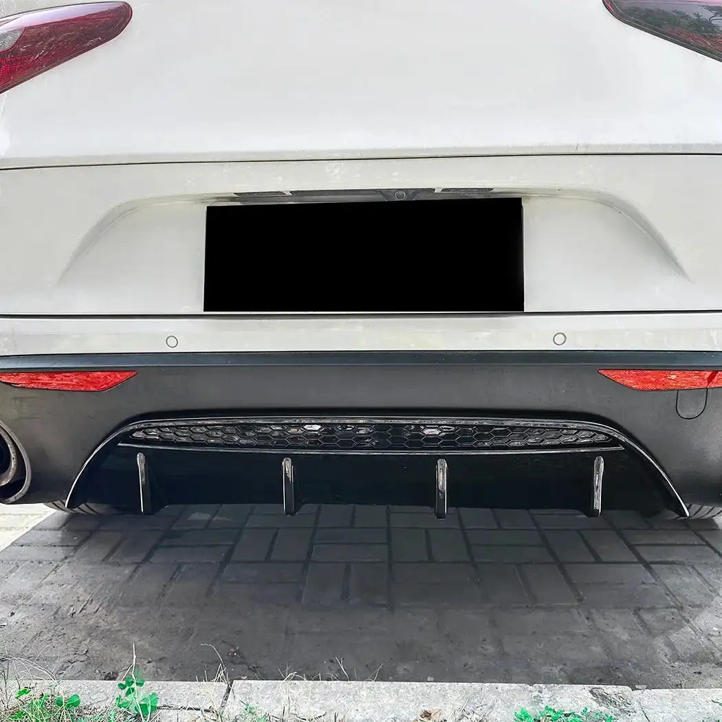 Ulepsz wygląd i funkcję swojego Alfa Romeo Stelvio (2017-2024) dzięki precyzyjnie wykonanym dyfuzorowi spoilera z czterema finami. Wykonany z trwałego ABS, ten dolny wargę dodaje agresywnej, wyścigowej sylwetki, jednocześnie pomagając chronić tylny zderzak przed codziennymi zadrapaniami. Zaprojektowany dla bezproblemowego dopasowania, poprawia aerodynamikę i obecność twojego pojazdu, nie rezygnując z stylu OEM.