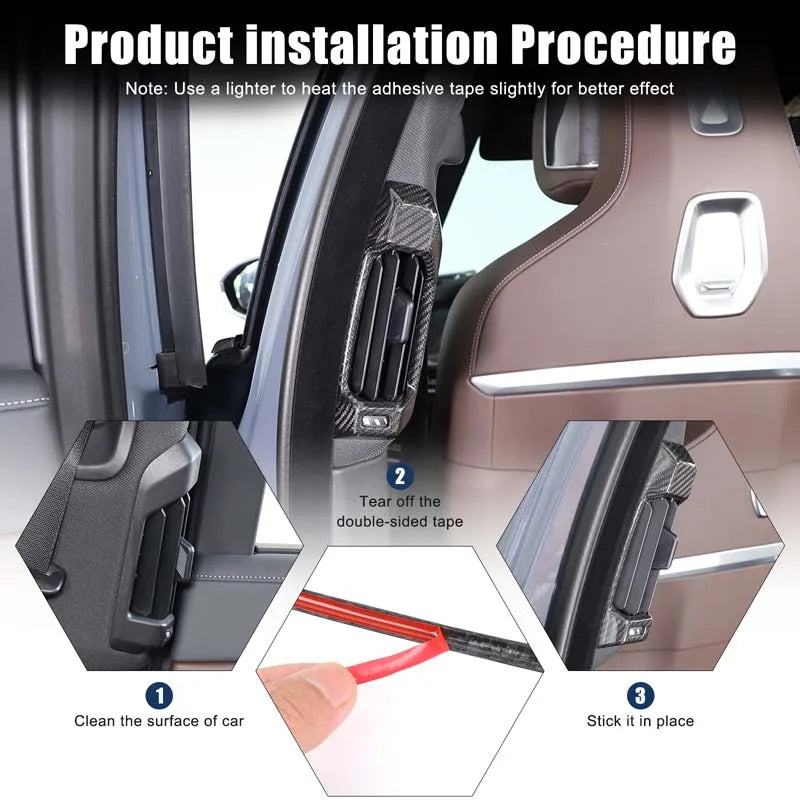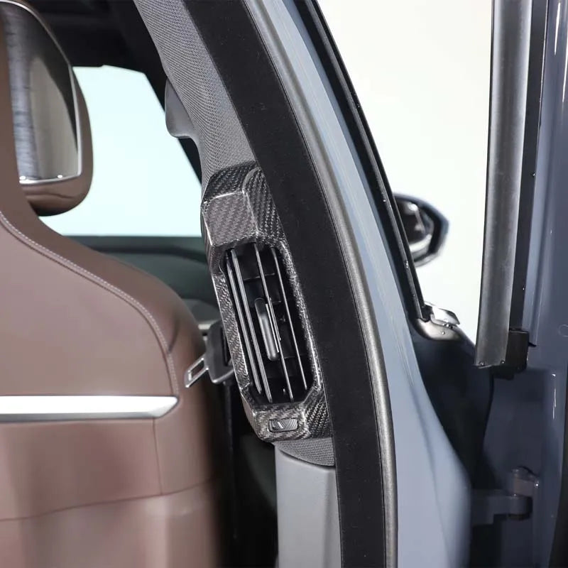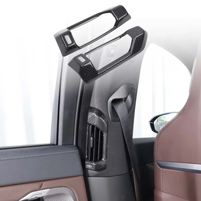 - 2 elementy dekoracyjnych ram wylotu powietrza B słupka z prawdziwego włókna węglowego do BMW serii 7 G70 (2023-2025+)