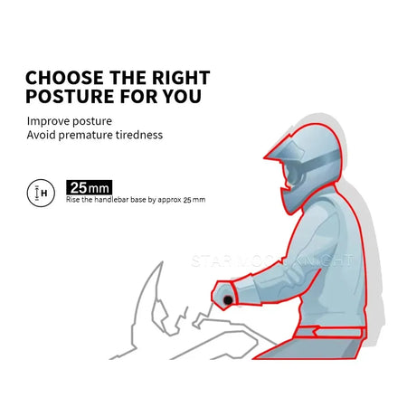 Z wykończeniem anodowanym na srebrno dla trwałości i czystym wyglądem dopasowanym do linii motocykla, ten zestaw podniesienia to prosta konwersja, która nie wymaga dalszych zmian. Ulepszenie zapewnia bardziej wyprostowaną pozycję siedzącą, poprawioną pasywną ochronę oraz bardziej bezpośrednie odczucie prowadzenia — idealne dla kierowców poszukujących komfortu bez kompromisów w prowadzeniu czy kontroli.