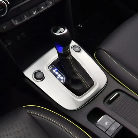 - Dodaje stylowy, premium srebrny akcent do obszaru dźwigni zmiany biegów w Kona, podnosząc wygląd wnętrza.