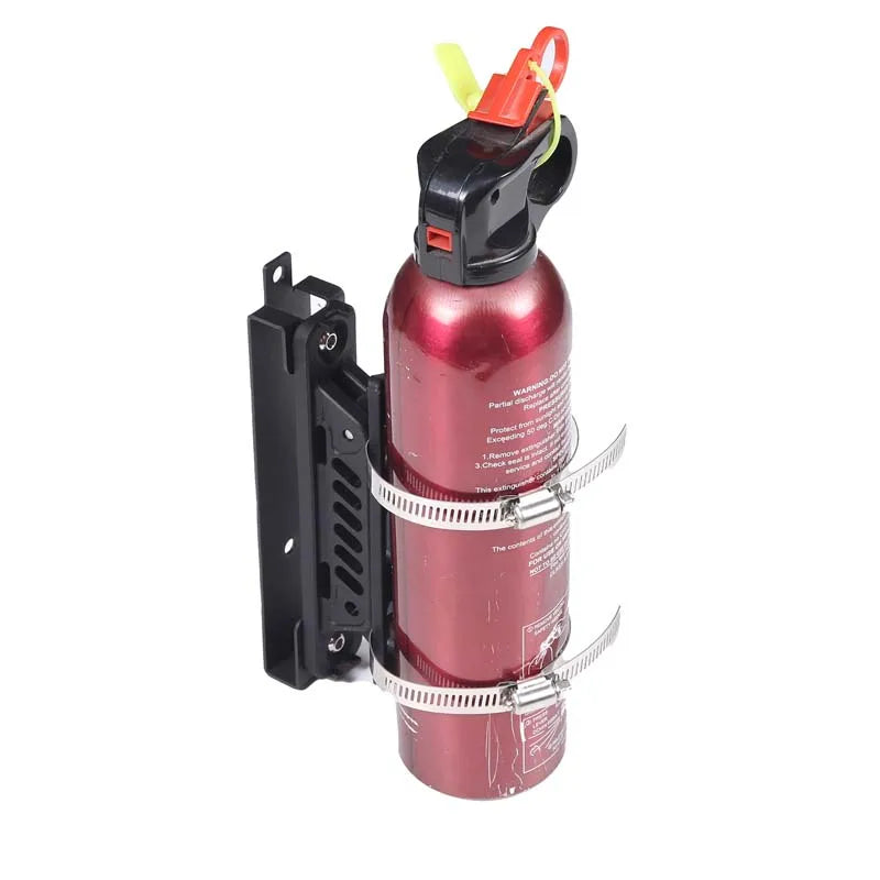 - Utrzymuje gaśnicę stabilnie na miejscu, ograniczając ruch i zapobiegając bałaganowi wewnątrz.