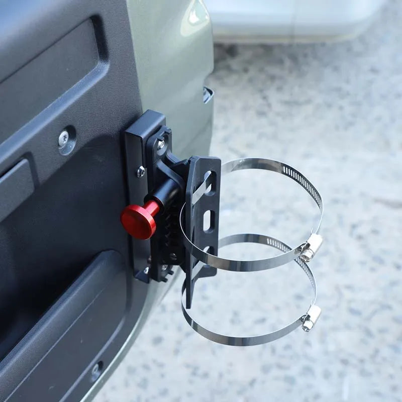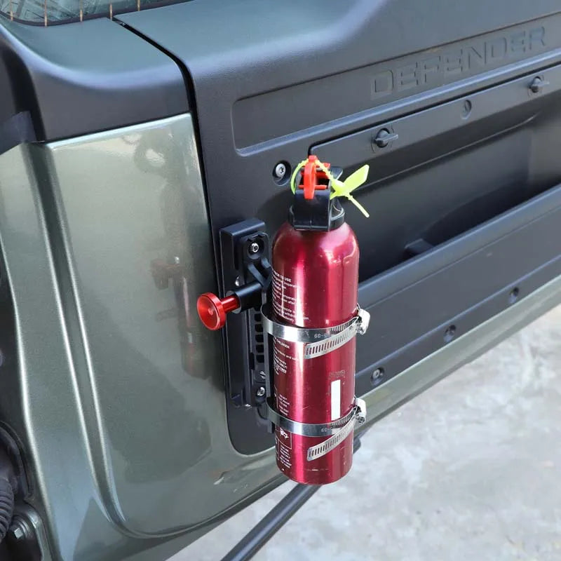 Uchwyt na gaśnicę do tylnej klapy Defender 90 110 oferuje inteligentne, solidne rozwiązanie, aby utrzymać kompaktową gaśnicę w zasięgu ręki na tylnej klapie Land Rover Defender. Zaprojektowany do szybkiego dostępu w nagłych wypadkach, zachowuje czysty wygląd pojazdu, dodając praktyczne zabezpieczenie podczas przygód off-road.
