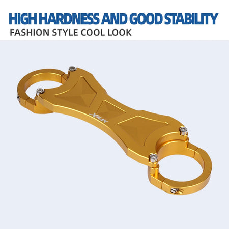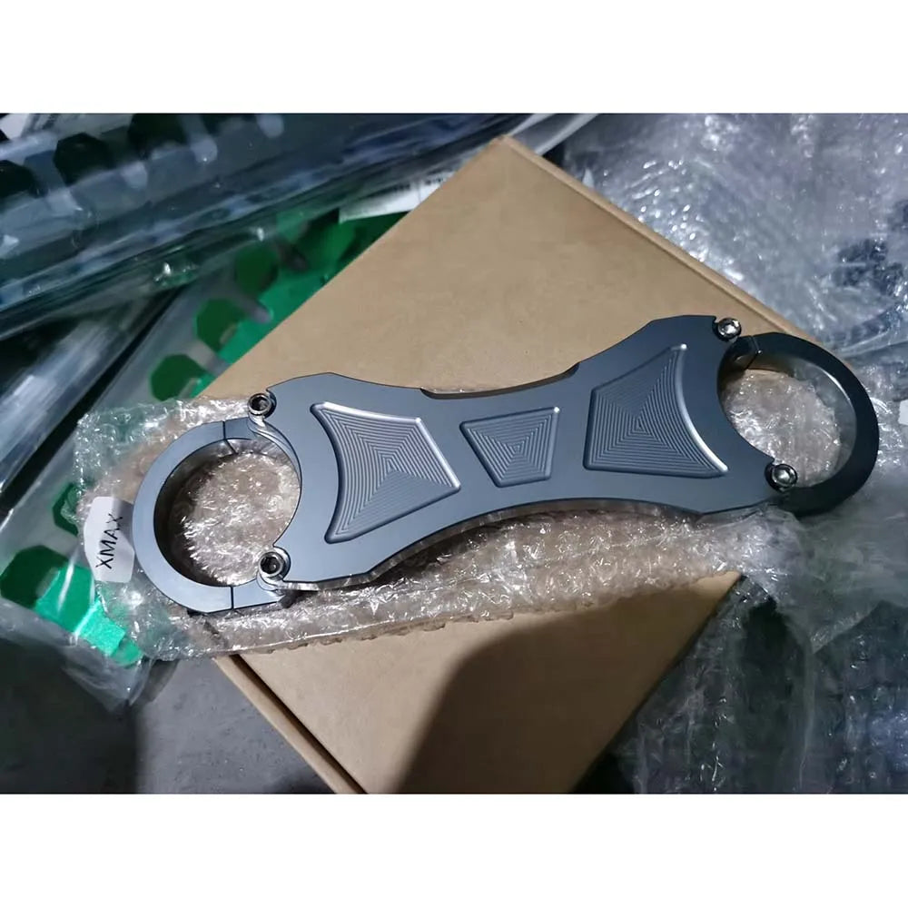 Ulepsz swoją jazdę Yamaha XMAX dzięki przedniemu wspornikowi stabilizatora widelca dla płynniejszego i bardziej kontrolowanego doświadczenia. Wykonany z aluminium CNC, ten wspornik balansujący został zaprojektowany tak, aby równomiernie rozkładać obciążenia na widelec, redukując drgania podczas pokonywania zakrętów i pomagając utrzymać stabilność dla bezpieczniejszej i pewniejszej jazdy.