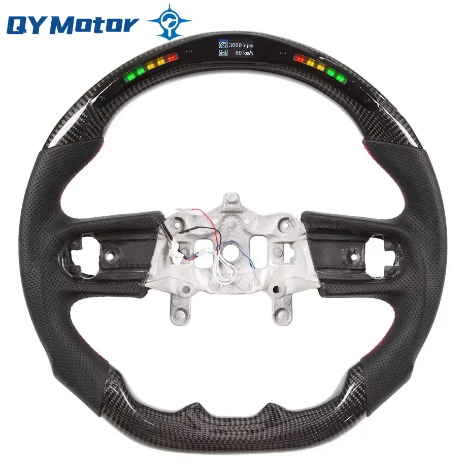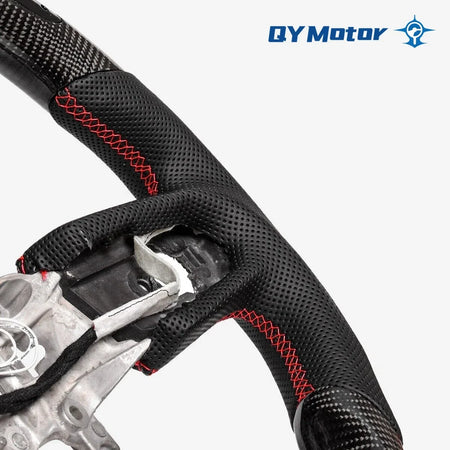 Podgrzewana kierownica Jeep Wrangler JL z perforowaną skórą węglową oferuje premium upgrade wnętrza dla modeli Wrangler JL i Gladiator z lat 2018–2021. Wykonana z włókna węglowego i czerwonej perforowanej skóry, łączy surowy styl Jeepa z nowoczesnym komfortem. Kierownica ma okrągły górny kształt i płaski dół, co zapewnia sportową postawę i lepszy chwyt, a czarne przeszycia dodają eleganckiego wykończenia. Zintegrowane oświetlenie LED i wbudowane ogrzewanie utrzymują ręce w cieple w zimne poranki lub na szlakach, zwiększając komfort i kontrolę podczas jazdy.