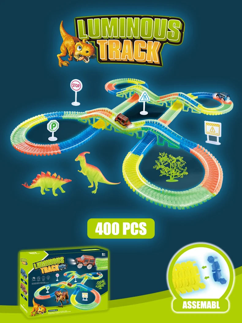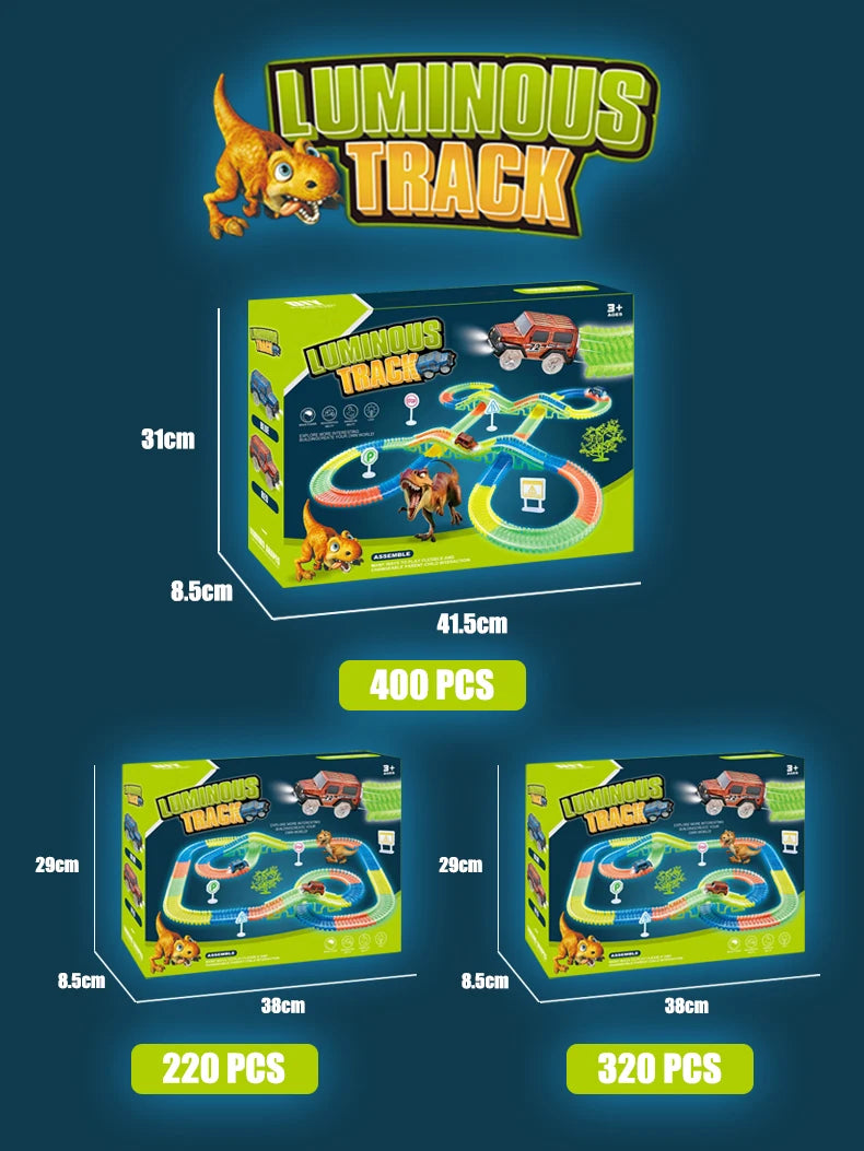 Poznaj Zestaw Torów Dinozaura Fluorescencyjnego Luminescencyjnego, przygodę budowania świecącą w ciemności, która pobudza wyobraźnię i ciekawość. Wykonany z trwałego plastiku ABS, te żywe fluorescencyjne tory świecą w zabawnych odcieniach, zapraszając dzieci do projektowania krętych tras z ery dinozaurów i narracyjnej zabawy na stole lub podłodze. Dostępny w zestawach pudełkowych 220 sztuk, 320 sztuk lub 400 sztuk, ten wszechstronny system Torów Dino jest idealny dla ciekawskich umysłów w wieku 4–12 lat. Wspiera kreatywne myślenie, rozwój motoryki małej oraz zabawę zespołową, gdy mali budowniczowie rozszerzają swój prehistoryczny świat.