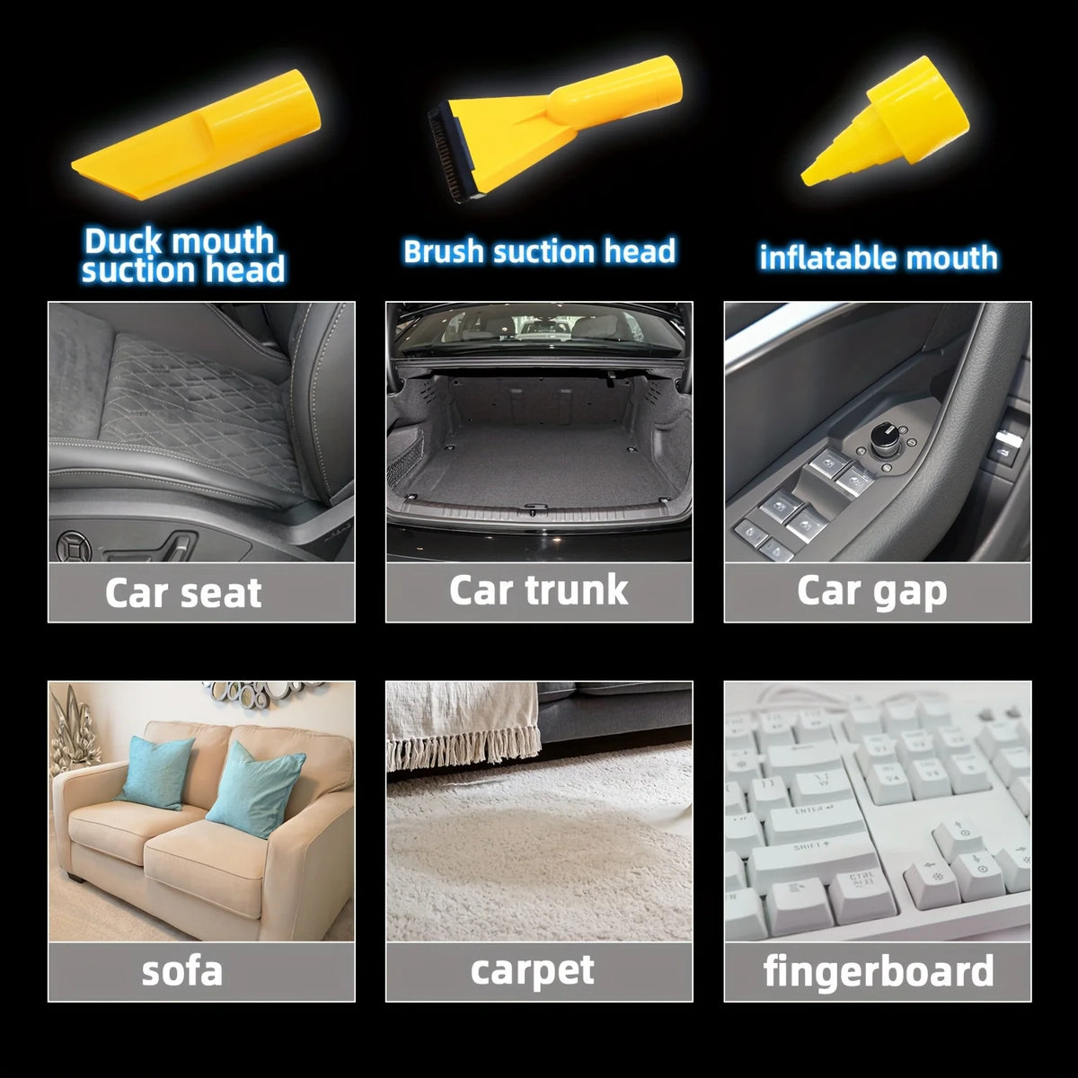 - Użyj płaskiej dyszy, aby czyścić między siedzeniami, pod pedałami i w innych trudno dostępnych miejscach, zapewniając nieskazitelną czystość.